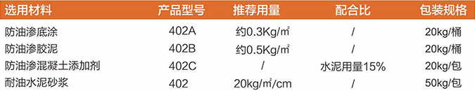 3.适用于抗渗性能要求较高的贮存轻油类和重油类的油灌工程。