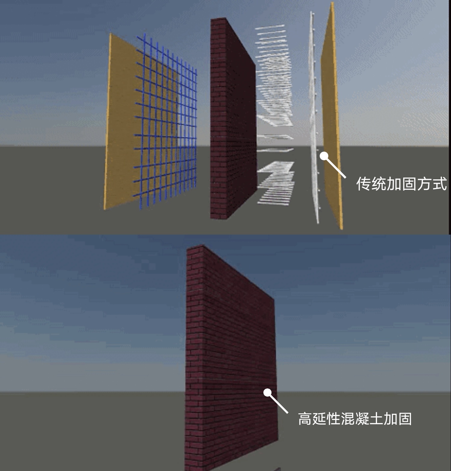 传统钢筋网片加固同高延性混凝土加固工艺对比