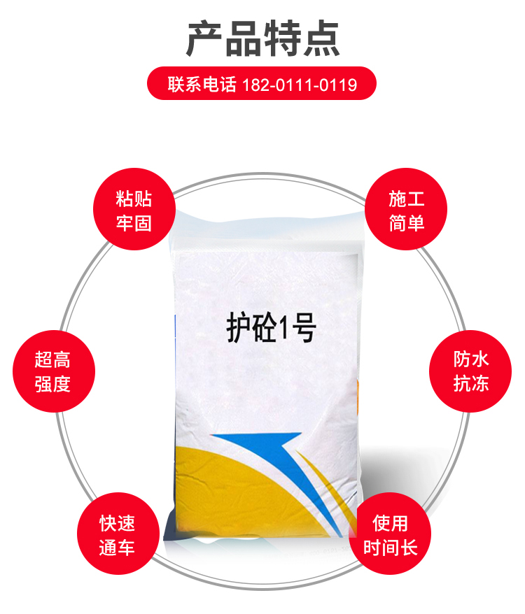 1-2小时快速通车,适用于混凝土路面出现蜂窝,麻面,起砂,起皮,露骨及细微裂缝的快速修护。特别适合路面抢修,车流量大施工时间有要求的路段;以及机场跑道抢修快速起降;高低速公路、收费站、服务区、加油站。