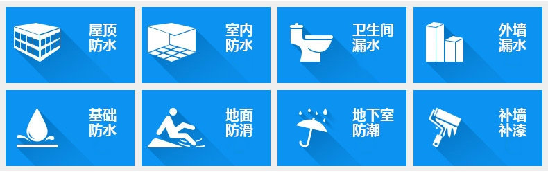 1. 使用于工业和民用建筑内外墙,外墙,混凝土,地下室,水池,水塔,异性屋面,隧道,厕浴间,大坝等部分的防水,防腐,防渗,防潮及渗漏修复工程。